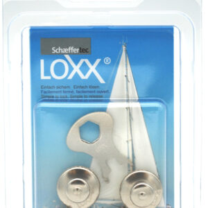 Loxx-Sperrverschluss bestehend aus 2 Oberteilen (kleine Kappe), 2 Schrauben je 16 mm lang und 1 Schlüssel vernickelt.