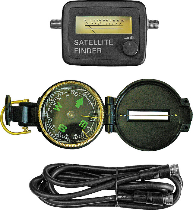 Mit dem exakt geformten Sat-Spiegel sind selbst noch am Rand der Ausleuchtzonen einwandfreie TV-Bilder zu empfangen. Zur platzsparenden Verstauung wird der LNB-Arm einfach hochgeklappt. Zur Einstellung des Spiegels wird kein Werkzeug benötigt, da überall Flügelschrauben verwendet werden. Sat-Spiegel 54 cm mit klappbarem LNB-Arm. Stativ aus Alu mit drehbarem Mastende zur Ausrichtung der Sat-Antenne. Sat-Finders und Kompass. Hochwertige Tragetasche in der alle Teile verstaut werden können.