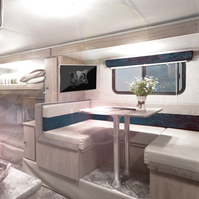 Schnellverschluss eignet sich perfekt für Wohnwagen und Wohnmobile. Der Fernseher lässt sich einfach samt Montageplatte entfernen. Der Neigungsmechanismus bietet eine Einstellung für den optimalen Betrachtungswinkel.