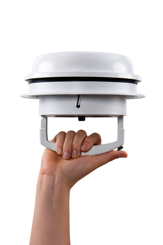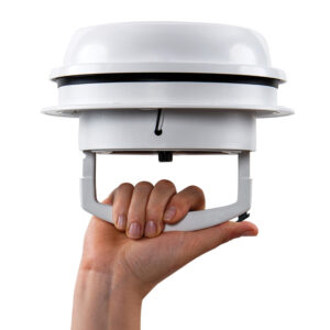 Kompakte Lösung für Dach- oder Seitenwandbelüftung und Feuchtigkeitskontrolle in kleinen Bereichen, einschließlich Badezimmern und Duschen. Entwickelt für Dach- oder Seitenwandbelüftungsanwendungen. 6-Zoll-Lüfter nur mit manuell anhebbarem Deckel. Verriegelungsdeckel mit Einhand-Druckknopfbedienung. Abnehmbare Gitter erleichtern die Reinigung. Passend für 1″ Dachstärken (erhältlich bis zu 6″ Stärke). Verpackt mit einem passenden Lüfterschutz, der für Seitenwandanwendungen verwendet werden muss. Bei Seitenwandanwendungen dient der Lüfterschutz als Regenschutz und schützt Ihren Innenraum vor Witterung und Schmutz. Zusätzlich bietet der Lüfterschutz Schutz vor versehentlichem Kontakt mit den Lüfterflügeln. Mit LED Leuchten.