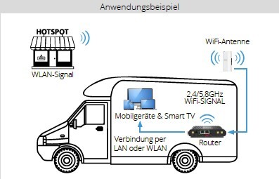 - WiFi 2.4 / 5.8 GHz Außen-Antenne mit Router