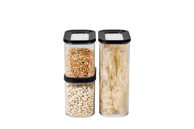 Dieses praktische Modula Set besteht aus: 1 x 2000 ml und 2 x 1000 ml. Der transparente Deckel mit Dichtungsring sorgt für einen perfekten Verschuss, dadurch sind diese Vorratsdosenideal geeignet für die Aufbewahrung von trockenen Lebensmitteln wie etwa Kaffee, Mehl, Chips, Kräutern und Nudeln. Die Modula Vorrats- und Aufbewahrungsdosen sind in verschiedenen Größen und Ausführungen erhältlich, liegen gut in der Hand und sind leicht zu öffnen. Desweiteren sind die Dosen stapelbar und spülmaschinengeeignet.