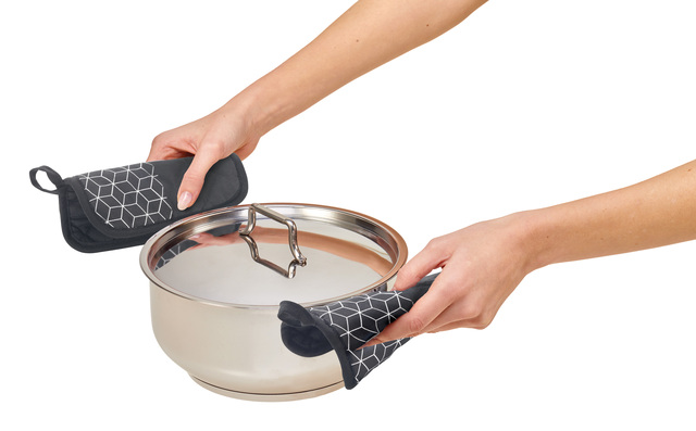 Topflappen 2er Set schwarz, Mit trendigem Dekor. CE zertifiziert.