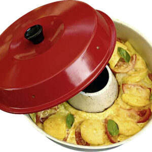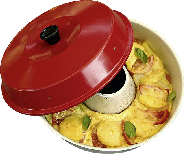 Den OMNIA Camping Backofen können Sie sowohl auf offener Flamme (z. B. Gasherd), als auch auf dem Elektro- oder Ceranfeld (nicht Induktion) zuhause nutzen. Der Backofen besteht aus drei Teilen, die zusammen wie ein Backofen funktionieren. Durch die geschickte Konstruktion wird die Hitze gleichmäßig verteilt. Es entsteht Ober- und Unterhitze.