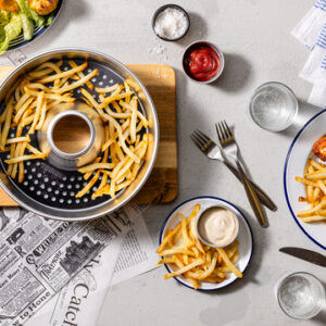 Mit dem neuen Omnia-Backblech einfach perfekte Pommes frites auf dem Herd zubereiten.