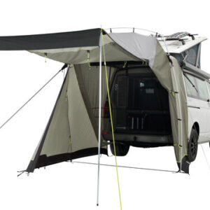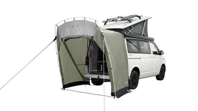 Paare, Familien und Freunde werden das geringe Gewicht, das kleine Packmaß und den zusätzlichen Platz zu schätzen wissen, den das geniale Outwell Sandcrest L für ein komfortables Leben im Van bietet. Als heckseitig montierte, feste Markise mit nur einer Aluminiumstange ist sie wirklich leicht, lässt sich klein verpacken und die Fahrzeugtüren werden nicht durch Abspannleinen blockiert. Sie ist für Busse und Vans wie VW Transporter, Multivan, California (T5/6/6.1), MB Vito, V-Klasse, Marco Polo (W639, W447), Peugeot Traveller und ähnliche konzipiert. Perfekt für Camping und Tagesausflüge, zum Kochen, als Tagesunterstand oder als Umkleidekabine. Das clevere Design ermöglicht es Ihnen, die Heckklappe sicher zu schließen und zu verriegeln, wenn Sie zu einer Wanderung oder einem Fahrradabenteuer aufbrechen, oder sie über Nacht offen zu lassen, während Sie das Heck Ihres Vans mit seinem insektensicheren Gitter für eine gute Belüftung sichern. Außerdem können Sie die Klappe als Schattendach aufstellen (Stangen nicht im Lieferumfang enthalten), wenn Sie Ihr Fahrrad befestigen oder Ihre Batterie nach Ihren Outdoor-Ausflügen wieder aufladen.