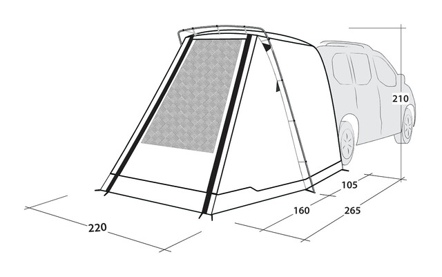 Geringes Gewicht, kleines Packmaß sowie einfacher und schneller Aufbau. Als heckmontierte, feste Markise mit nur einer Aluminiumstange ist sie wirklich leicht, lässt sich klein verpacken und die Fahrzeugtüren werden nicht durch Abspannleinen blockiert. Sie ist für Fahrzeuge wie Peugeot Rifter, Citroen Berlingo, VW Caddy und ähnliche konzipiert. Dank der leicht verstellbaren Höhe ist es auch ideal für kleinere Fahrzeuge und SUVs geeignet, ideal für Camping und Tagesausflüge zum Kochen, als Tagesunterstand oder Umkleideraum. Das clevere Design ermöglicht es Ihnen, die Heckklappe sicher zu schließen und zu verriegeln, wenn Sie sich auf eine Wanderung oder ein Fahrradabenteuer begeben, oder sie über Nacht offen zu lassen, während Sie das Heck Ihres Vans mit seinem insektensicheren Gitter für eine gute Belüftung sichern. Außerdem können Sie die Klappe als Schattendach aufstellen (Stangen nicht im Lieferumfang enthalten), wenn Sie Ihr Fahrrad befestigen oder Ihre Batterie nach Ihren Outdoor-Ausflügen wieder aufladen.