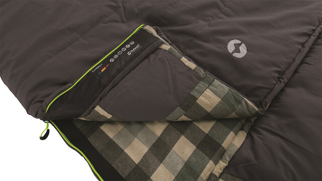 Der Schlafsack Camper von Outwell zählt bei Familien seit jeher zu den beliebtesten Modellen. Mit diesem Schlafsack können Sie richtig schöne Sommerurlaube verbringen. Kuscheln Sie sich in den weichen Innenbezug in Kontrastfarben, lassen Sie sich von der flauschigen Dämmung warm halten und fühlen Sie sich nach einer Nacht in dem atmungsaktiven Material morgens frisch und ausgeruht. Das integrierte Kissen und die Kapuze mit Reißverschluss für kältere Nächte sorgen dafür, dass Sie jede Nacht gut schlafen können. Sie können auch zwei Schlafsäcke mittels Reißverschluss zu einem Doppelschlafsack verbinden.
