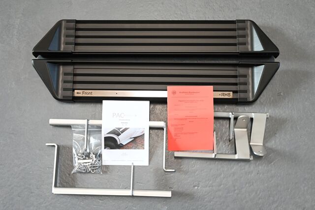 | Lieferumfang | 2 Stück Zusatz-Trittstufen, Freistufe inkl. Kunststoff-Schutzecken (Fahrer- und Beifahrerseite), 2 Edelstahl-Anbausätze, Befestigungsmaterial, Anbauanleitung |