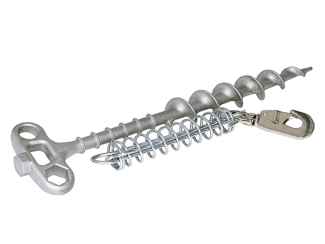 PetPeg ist ein Erdbodenanker mit Stoßdämpfer zum Anleinen von Hunden, Katzen etc., der in sehr vielen Böden eingesetzt werden kann. Durch die flexible Höhenverstellung wirkt die Zugkraft immer in Bodennähe und der PetPeg bleibt fest verankert. Einfach Feder auf den Boden legen, Schraube durch das offene Auge der Feder, so tief wie möglich, manuell oder maschinell einschrauben. Anschließend auf festen Sitz prüfen. Der PetPeg ist geeignet für Tiere bis. max. 45 kg. Der Ruckdämpfer verhindert, dass sich das angeleinte Tier durch die eigene Kraft verletzt.
