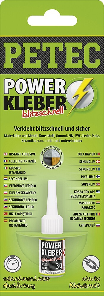 PETEC Sekundenkleber Power Kleber blitzschnell Inhalt 3 g