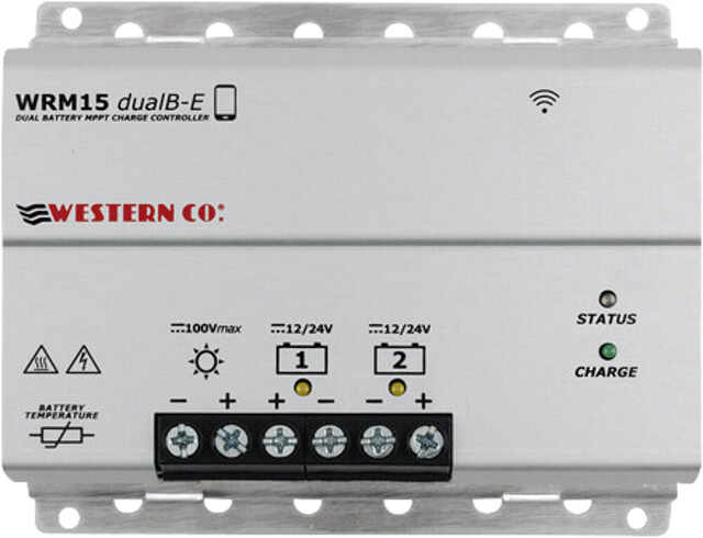 WRM Solarregler Western zum Laden von zwei Batteriesystemen mit USB-Anschluß, 12 / 24 V, 250 / 500 W. Bluetooth, Step Down MPPT Technology.