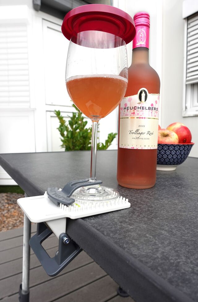 Nun können Sie Getränke draußen gemütlich genießen. Bienen, Wespen, Insekten aller Art fallen nun nicht mehr in die Trinkgläser.