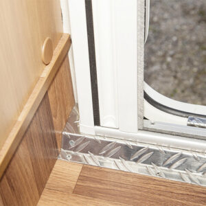 Das mit äußerst strapazierfähigem Fliegenschutz-Netzmaterial ausgestattete Plissee reicht komplett in die Führungsschienen hinein. Die seitlichen Abschlüsse an oberer und unterer Leiste verhindern zusätzlich das Eindringen unwillkommener Insekten. In die untere Türleiste kann zusätzlich ein Kabelkanal verlegt werden.