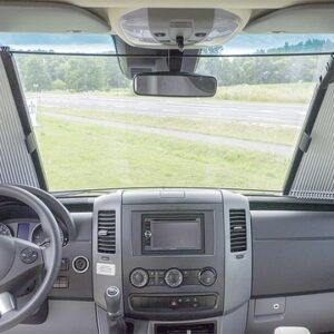 - Fahrerhausverdunklung bestehend aus dem Plissee-Faltsystem für die Frontscheibe und den beiden Verdunklungen für die Seitenscheiben