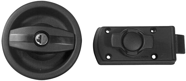safe-tec Wohnwagen Türschloss STS Oberholz Innengriff Knebel, 35-39 mm, mont. 1 Zyl. 2 Schl. Farbe schwarz