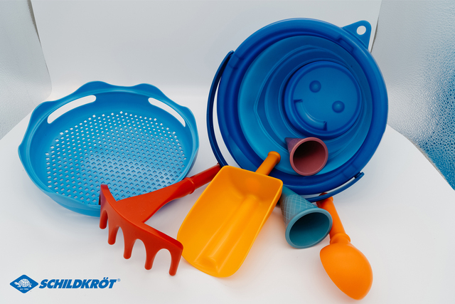 Welche Eltern kennen nicht das Problem, dass die Reisekoffer oder das Auto fertig gepackt sind und das normalerweise sperrige Sandspielzeug noch mit in den Urlaub soll? Oder es geht auf den Spielplatz und die Tasche bzw. der Kinderwagen sind schon voll bepackt. Mit diesem kompakten und innovativen 7in1 Set präsentiert Schildkröt die Lösung im praktischen Handtaschenformat. Das in Deutschland entwickelte Set ist in zwei Farbestellungen (Blau & Rot) erhältlich und bietet mit seinem faltbaren 3 Liter Eimer und den sechs zusätzlichen Sandspielzeugen zum Graben, Formen, Sieben und Rechen eine einzigartige und innovative Funktionalität.