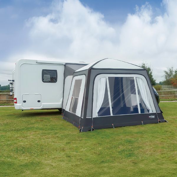 Die funktionale, in drei Anschlusshöhen erhältliche Schleuse verbindet das Reisevorzelt Rubin mit Ihrem Fahrzeug. Die Befestigung der Schleuse erfolgt am Zelt über einen Reißverschluss und am Bus, Wohnmobil oder am Wohnwagen über einen Keder.