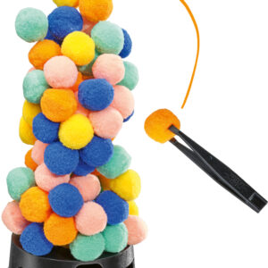 Fischt die lustigen Bällchen je nach Farbvorgabe geschickt aus dem Turm heraus und setzt sie weiter oben wieder ein. So entstehen die skurrilsten, unmöglichsten Turmformen und Gebilde. Verblüfft, dass die knuffigen Bällchen zusammenhalten? Verlasst euch nicht zu sehr darauf und Vorsicht: manchmal machen euch Challenge-Karten das Leben besonders schwer und ihr müsst noch mehr aufpassen, dass der Turm nicht einstürzt, denn dann steht der Verlierer fest und die anderen dürfen feiern!