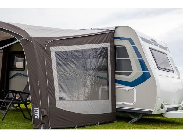 Mit den Telta Sky Link 400 Seitenwänden machst du deine Sky Link 400 Wohnwagen-Sackmarkise noch wetterfester. Die seitlichen Paneele lassen sich dank Reißverschluss schnell und einfach an der Markise befestigen und schützen dich zuverlässig vor Wind und Regen.