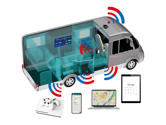 Im Wohnmobil oder Wohnwagen ist eine stabile Internetverbindung für Smartphone, Tablet, Laptop, Smart TV oder Spielekonsole oft eine Herausforderung. SELFSAT bietet verschiedene Lösungen für WLAN Versorgung unterwegs. Die SELFSAT Router können über das 12/24 Volt Bordnetz betrieben werden und empfangen WLAN oder Mobilfunknetz Signale von außen, um sie im Fahrzeug als privates, geschütztes WLAN auszustrahlen. Eine Außenantenne sorgt für guten Empfang und die Überbrückung der Abschirmung der Außenhülle des Fahrzeugs. Die Montage ist einfach und die Antenne ist staub- und wasserdicht. Die Verbindung mit dem Router erfolgt über QR Codes oder WLAN Namen und Passwort. Die Bedienung ist benutzerfreundlich, erfolgt über den Internet Browser und erfordert somit keine separate App. Der Router unterstützt die Anmeldung an Campingplatz WLANs mit Anmeldeseite (Captive Portal), die GPS Ortung des Wohnmobils, die Installation von VPNs zum Streamen im Ausland und ist Starlink kompatibel.