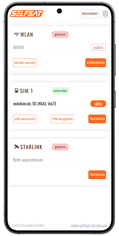 Im Wohnmobil oder Wohnwagen ist eine stabile Internetverbindung für Smartphone, Tablet, Laptop, Smart TV oder Spielekonsole oft eine Herausforderung. SELFSAT bietet verschiedene Lösungen für WLAN Versorgung unterwegs. Die SELFSAT Router können über das 12/24 Volt Bordnetz betrieben werden und empfangen WLAN oder Mobilfunknetz Signale von außen, um sie im Fahrzeug als privates, geschütztes WLAN auszustrahlen. Eine Außenantenne sorgt für guten Empfang und die Überbrückung der Abschirmung der Außenhülle des Fahrzeugs. Die Montage ist einfach und die Antenne ist staub und wasserdicht. Die Verbindung mit dem Router erfolgt über QR Codes oder WLAN Namen und Passwort. Die Bedienung ist benutzerfreundlich, erfolgt über den Internet Browser und erfordert somit keine separate App. Der Router unterstützt die Anmeldung an Campingplatz WLANs mit Anmeldeseite (Captive Portal), die GPS Ortung des Wohnmobils, die Installation von VPNs zum Streamen im Ausland und ist Starlink kompatibel. Die Dachantenne hat einen DAB Plus Anschluss mit FAKRA G (männlich) zum Anschluss eines Fahrzeugradios.