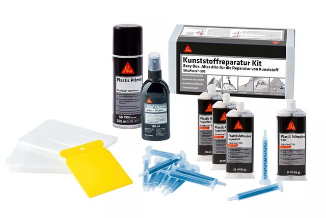 Eine Box – Alles drin! Das Kunststoffreparatur Kit bietet eine Komplettlösung mit sinnvoll aufeinander abgestimmten Komponenten und deckt ein breites Spektrum an Anwendungsmöglichkeiten ab.
