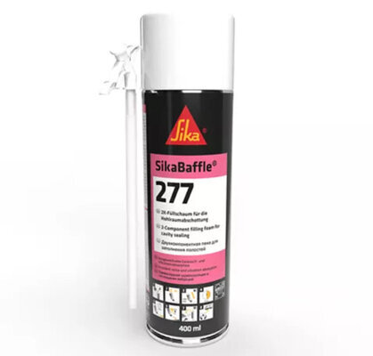 SikaBaffle®-277 ist ein gebrauchsfertiger, schnell aushärtender zweikomponentiger-Polyurethanschaum in einer Spraydose. Das Produkt wird zur Abdichtung von Hohlräumen gegen Lärm, Luft, Feuchtigkeit und Staub in Fahrzeugen verwendet. Das gefüllte Treibmittelgemisch ist FCKW-frei und frei von HFCKWs und Perfluorkohlenwasserstoffen (PFCs). Das Produkt entspricht den gesetzlichen Anforderungen der EU-Verordnung (EG) Nr. 842/2006 für bestimmte fluorierte Treibhausgase.