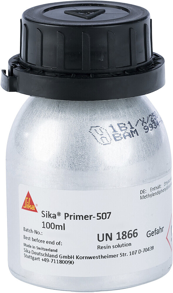 Sika Primer-507 basiert auf der Purform Technologie. Die Purform Technologie ermöglicht leistungsfähige Polyurethanprodukte mit weniger als 0,1 Prozent monomerem Diisocyanat für einen besseren Gesundheits- und Arbeitsschutz. Sika Primer-507 ist ein schwarzer Voranstrich auf Lösemittelbasis, der mit Feuchtigkeit reagiert und eine dünne Schicht bildet. Diese Schicht wirkt als Bindeglied zwischen Untergrund und Klebstoff. Sika Primer-507 wurde speziell zur Vorbehandlung von Klebeflächen in Kombination mit elastischen Kleb- und Dichtstoffen von Sika entwickelt. Dieser Primer zeigt auch ohne vorherigen Einsatz von Sika® Aktivator auf vielen Untergründen eine ausgezeichnete Haftung. Sika Primer-507 fluoresziert für einen begrenzten Zeitraum unter langwelligem UV Licht. Diese Eigenschaft wird für die Prozesskontrolle verwendet.