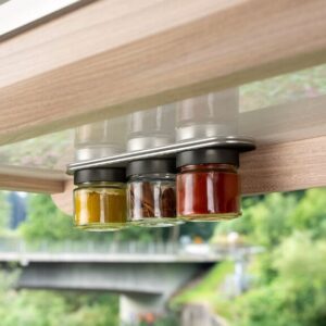 | Lieferumfang | inklusive 3 x Feinkost-Magnetgläser je 125 ml, 1 x Metall-Leiste 25 cm, Etiketten zum Beschriften |