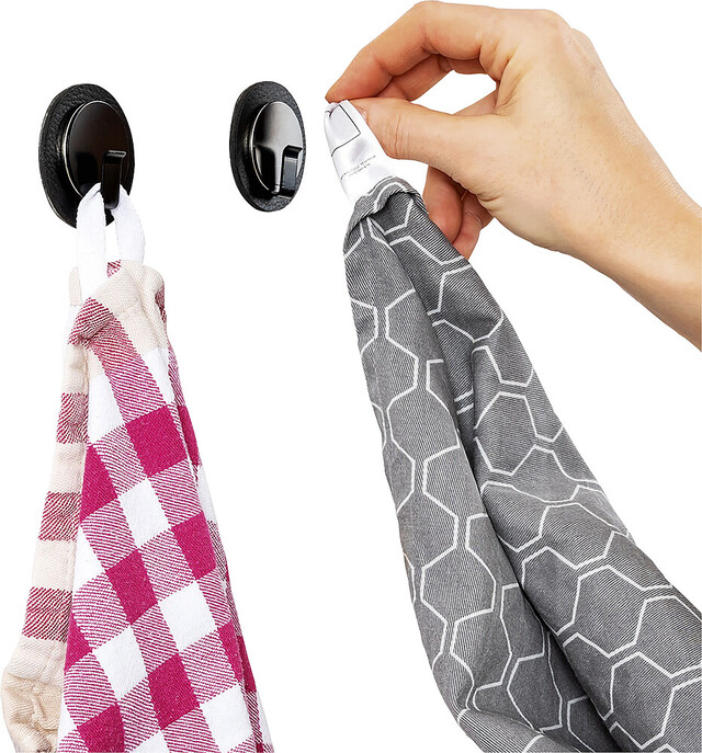 Magnet-Haken mit Pads im hochwertigen Leder-Look. Kein Kleben, kein Schrauben und kein permanentes Fixieren. Pads sind dauerhaft verwendbar und haften auf nahezu allen versiegelten Oberflächen. Flexibel und mobil einsetzbar z. B. für kleinere Gegenstände und kleine Küchenhelfer, Geschirrtücher, Topflappen u. v. m.