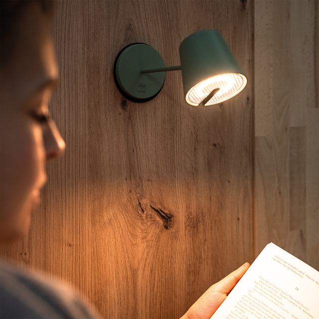 Weltneuheit: Schwenkbare Tisch- und Wandleuchte mit innovativer Magnetlösung.