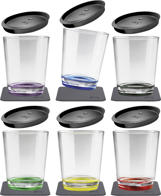 Magnet im Becherboden integriert. Der Deckel mit Trinkhalm-Öffnung ist auslaufsicher. Zum Verstauen an der Wand/Decke ist die silwy Metall-Leiste erforderlich.