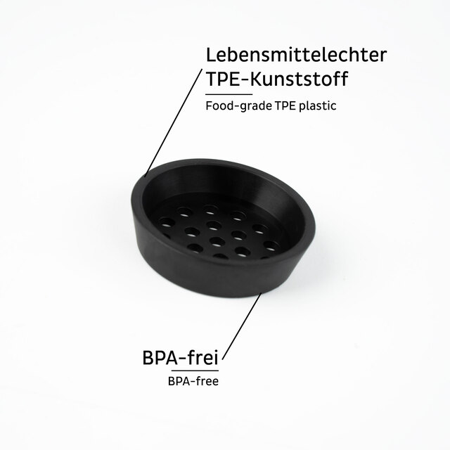 - Aus lebensmittelechtem, TPE-Kunststoff (BPA-frei)