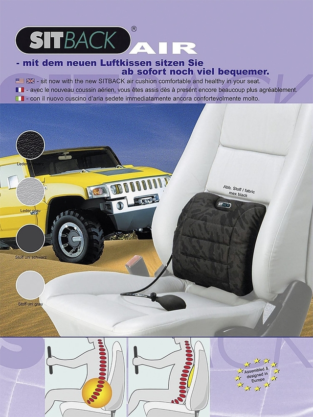 - Rückenkissen bzw. Lordosenkissen für nahezu alle Autositze