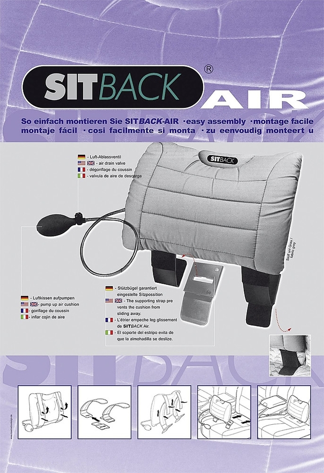 Das Sitback® Air Rückenkissen stützt den unteren Rücken und fördert eine ergonomische, entlastende Sitzhaltung.