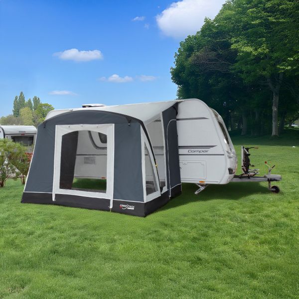 Das Teilzelt Kristal Air setzt Maßstäbe im Bereich der leichten Luftschlauch-Vorzelte und ist in verschiedenen Größen erhältlich. Dank seiner sehr guten Serienausstattung ist das Kristal der optimale Begleiter für Kurzurlaube und alle Camper, die nicht auf so viel Platz angewiesen sind. Durch die spezielle Camptech Bogenform genießen Sie eine bessere Stehhöhe in der Vorderwand. Die beiden seitlichen Dachschläuche machen das Vorzelt wesentlich stabiler. Alle Nähte sind abgedichtet. Ab 325 cm sind serienmäßig 3 Dachsäulen im Lieferumfang enthalten.