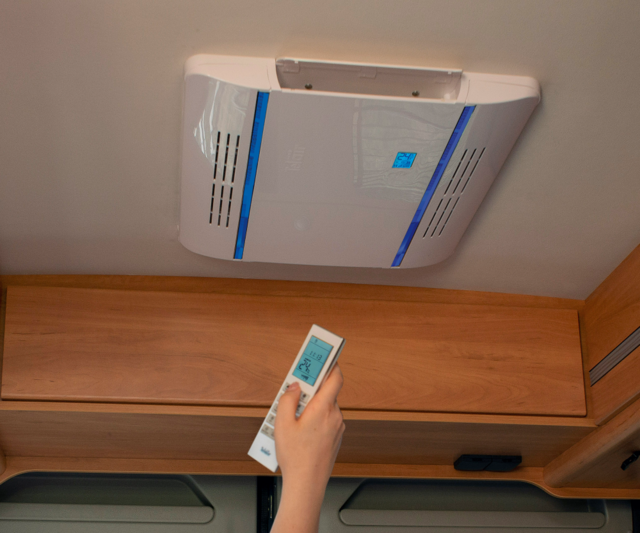 Das Modell CLIMA e-VAN 5400H ist für einen niedrigen Verbrauch ausgelegt und kann über einen reinen Sinus-Wechselrichter von mindestens 1500 W (in Betrieb) auch an eine Batterie angeschlossen werden, um bei fahrendem Fahrzeug verwendet zu werden.