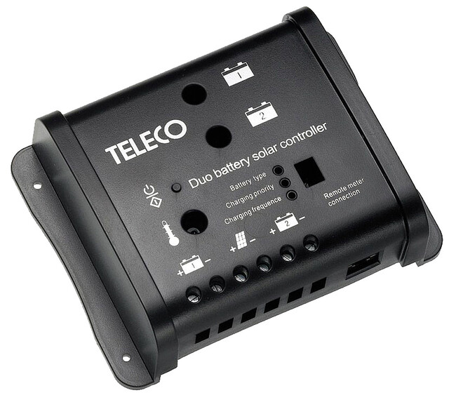 Laderegler SPC10/2 10 A /12 – 24 Volt für 2 unabhängige Batterien mit auswählbarem Ladeprozentsatz mit Temperaturtrimmer. Schutz gegen Überlastung, Kurzschluss und Verpolung. Geeignet für Bleibatterien mit Flüssig-, Gel- oder AGM-Technologie.