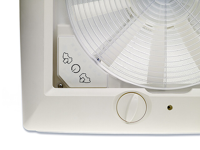 - Luftfördermenge regelbar in 6 Stufen per Drehrichtung (Min. = 3,7 m²/min, Max. =20 m²/min)