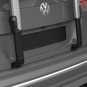 Thule Fahrradträger für unkomplizierte Ausflüge mit erhöhter Plattform, bei der die Rückleuchten und das Kennzeichen sichtbar bleiben.