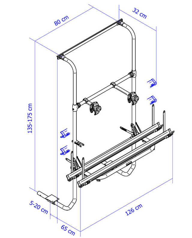Empfohlen für die Montage an der hinteren Wohnwagenwand. Untere Befestigung wird direkt an dem Wohnwagenboden angebracht.