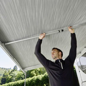 - Das Anbringen ist ganz einfach: Die Markise öffnen, die Spannstange in die Markise einsetzen und das Markisentuch wieder etwas aufrollen, bis die Spannstange fest sitzt