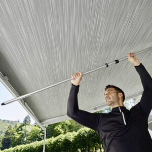 - Das Anbringen ist ganz einfach: Die Markise öffnen, die Spannstange in die Markise einsetzen und das Markisentuch wieder etwas aufrollen, bis die Spannstange fest sitzt