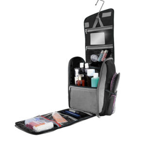 Perfekt für kleine Räume. Toilettenset für die ganze Familie. L-förmiger Türhaken. Viele Taschen für noch mehr Stauraum. Zusätzliche Taschen für Erste-Hilfe-Artikel. Tragegriff, um das Set mit zu den Campingplatzwaschräumen nehmen.