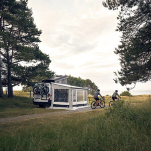 Je nach Markisenlänge variiert das Design der Vorderwand des Zeltes. Große Fensterflächen lassen sehr viel Licht herein und schaffen ein zusätzliches Gefühl der Weite.