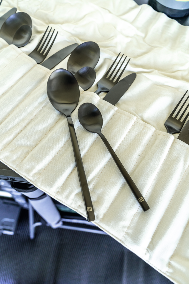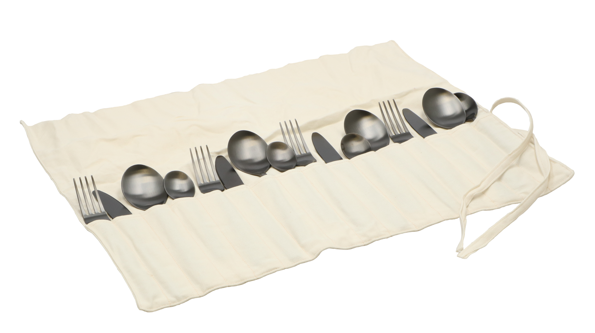Erweitern Sie Ihr Geschirrset mit dem 16-teiligen Altea-Besteckset. Das Set wird in einer Segeltuch-Bestecktasche geliefert, die Sie leicht zusammenrollen und aufbewahren können. Das Besteck besteht zu 100 % aus Edelstahl und hat damit eine lange Lebensdauer. Es ist außerdem spülmaschinenfest. Set bestehend aus 4 x Messer, 4 x Gabel, 4 x Esslöffel und 4 x Teelöffel.
