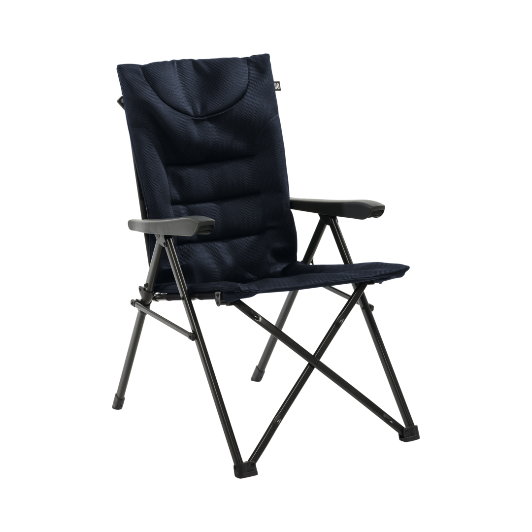 Der Stuhl hat eine verstellbare Rückenlehne, einen atmungsaktiven und schnell trocknenden 2D-Mesh-Bezug (100 % Polyester) und ein kompaktes Klappdesign.