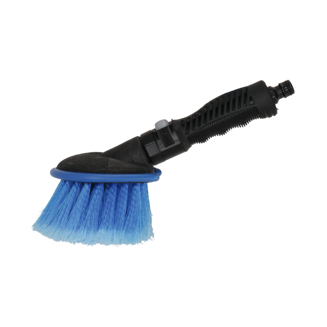 Hochwertige Handwaschbürste mit Polyesterspitzen zur Reinigung von Fahrzeugen oder Gartenmöbeln. Kann direkt an einen Wasserschlauch angeschlossen werden.