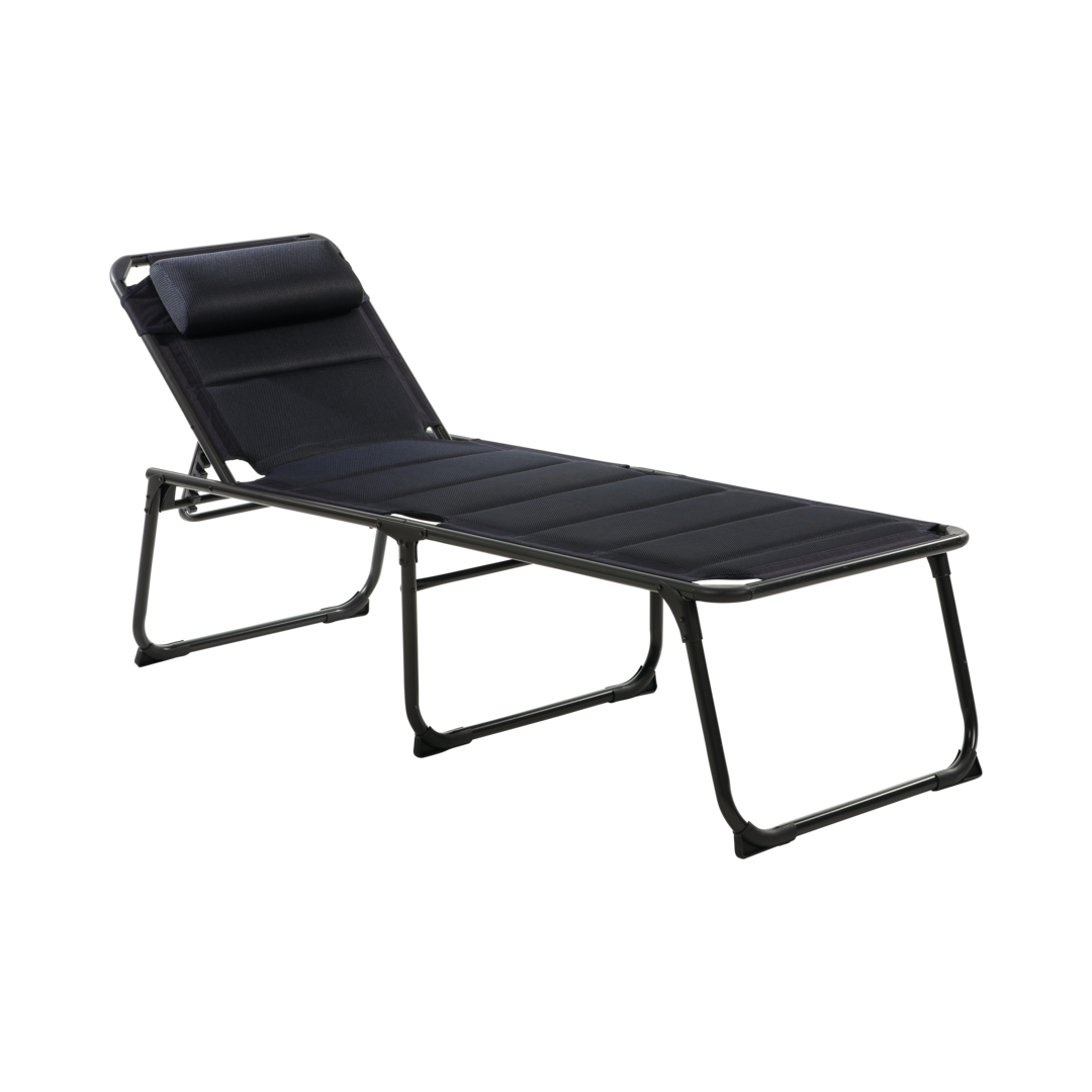 Die Barletta-Liege ist 5-stufig verstellbar und hat ein abnehmbares Kopfkissen. Der atmungsaktive und wetterfeste 2D-Mesh-Bezug (100 % Polyester) verleiht der Liege Komfort.